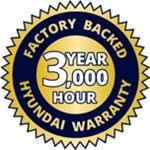 This Limited Warranty will cover the period from the date of delivery to the original purchase from an authorised HYUNDAI dealer for a term of thirty-six (36) months or three thousand (3,000) operating hours, whichever comes first, except for the following: 7SA and LE-7 models – 2 years / 2,000 hours whichever comes first; TITAN EQUIPMENT – 1 year / 1000 hours, whichever comes first.